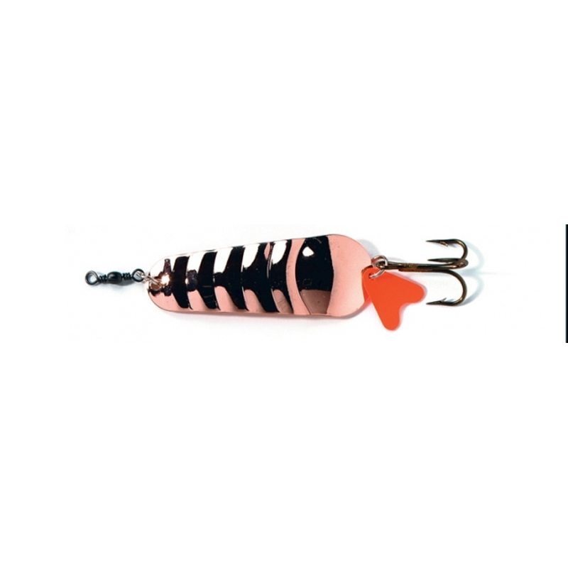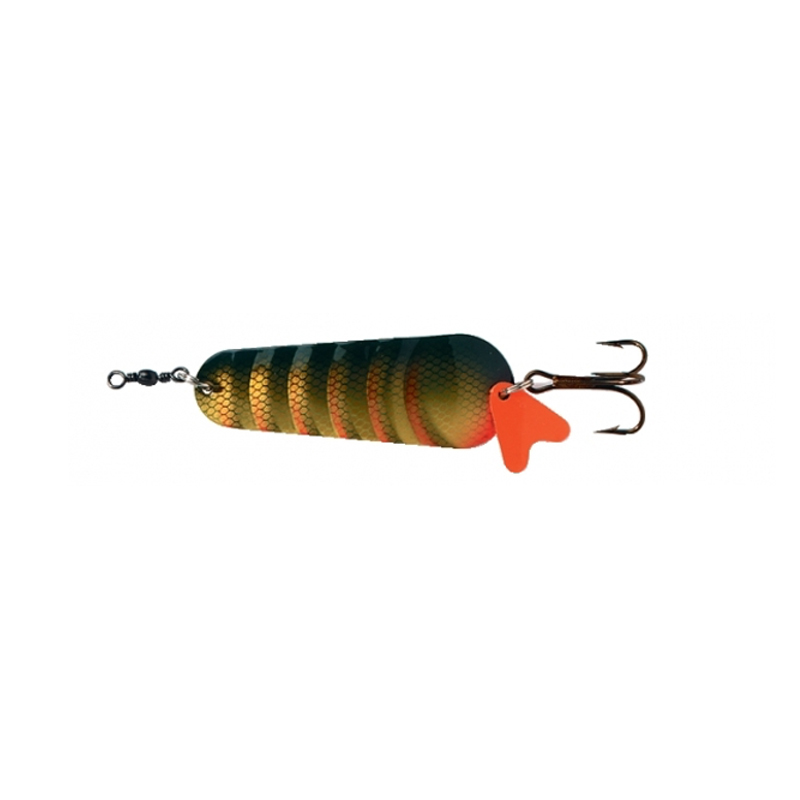 Den breda, svängande gången ger kraftiga vibrationer och blänk som lockar fisk även på långt håll. Dragets stabila rörelsemönster gör det lättfiskat både vid jämn invevning och vid varierat tempo. Tillverkat i slitstarkt material och utrustat med vass trekrok för säker krokning.