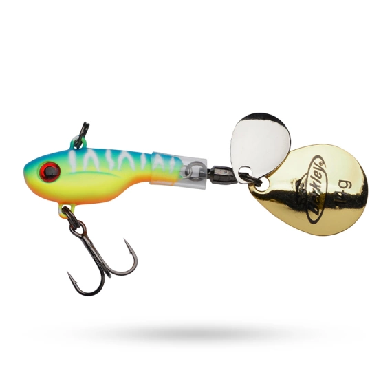 Den stora skeden skickar ut lockande signaler till fiskarna medan den lilla gör att hela betet vibrerar och vickar vilket gör det till ett ruggigt effektivt abborrbete. Trekroken är Berkleys egna supervassa Fusion19.