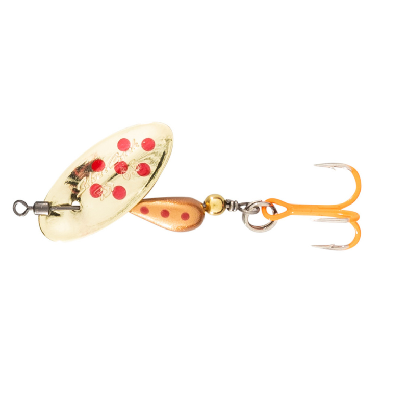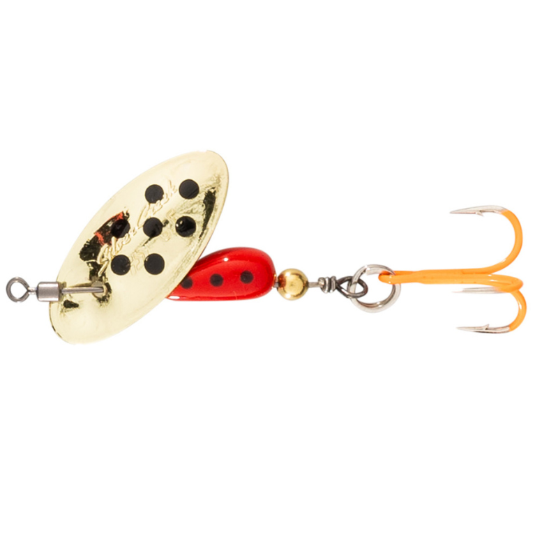 Silvercreek Spinner Pro finns i flera klassiska färger som guld, koppar och silver samt mönster som Dots, Mitsukan och Ladybug, så att du enkelt kan anpassa dig efter vattenfärg, ljusförhållanden och fiskens humör. Välj 6 g för lättare fiske i åar, bäckar och mindre sjöar eller 9 g när du vill kasta längre och söka aktivt efter rovfisk på större vatten.