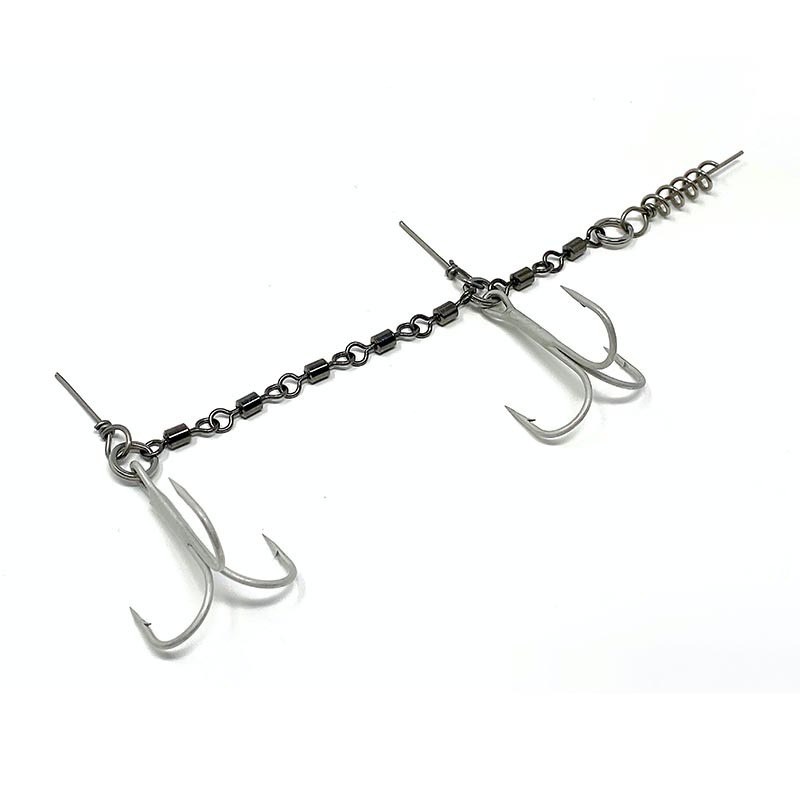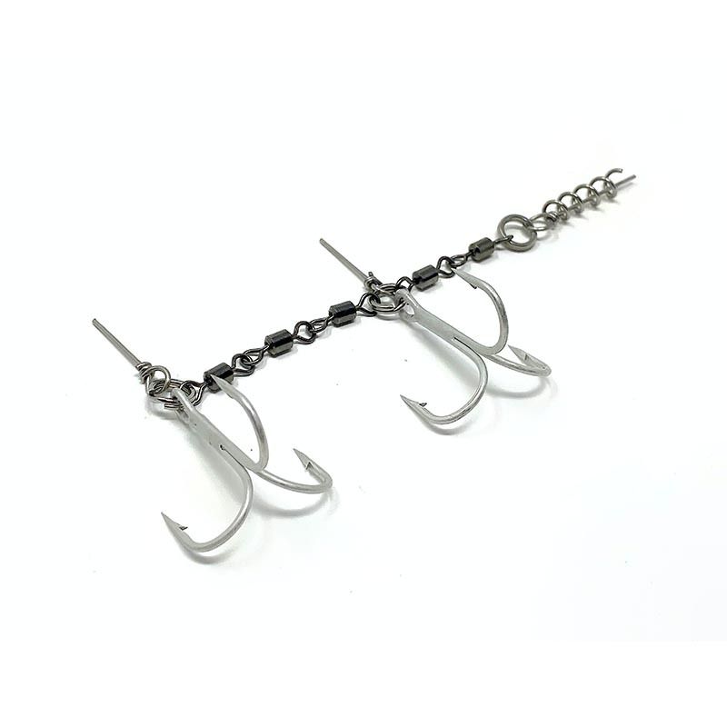 En av de starkaste stingers som finns på marknaden. Med dubbel, trippel och fyrvägslekanden i olika kombinationer som länkas ihop av kvalitetsfjäderringar blir detta en stinger som håller för nästan allt. En annan fördel med lekande i stingern är att gäddan får svårt att bända sig loss då allt är rörligt och att det då blir skonsammare för den vid catch´n release. Självklart är de i rostfritt stål och med VMC krokar.