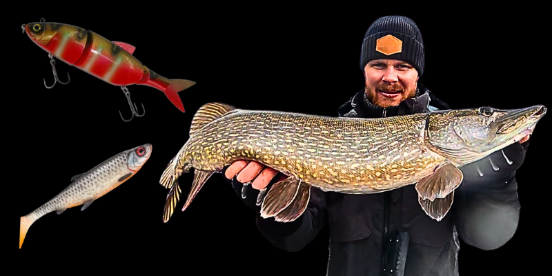 Shimano Yasei Soul Swim 23 cm – ett realistiskt, långsamt glidande swimbait som lockade till rejäla hugg när gäddan följde betesfisken.