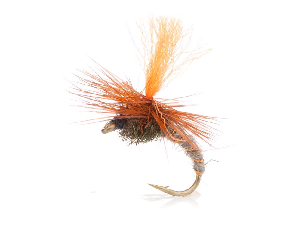 Unique Flies Klink Light Hi-Viz Orn #12 är en klassisk klinkhammer med en orange indikator för ökad visibilitet.