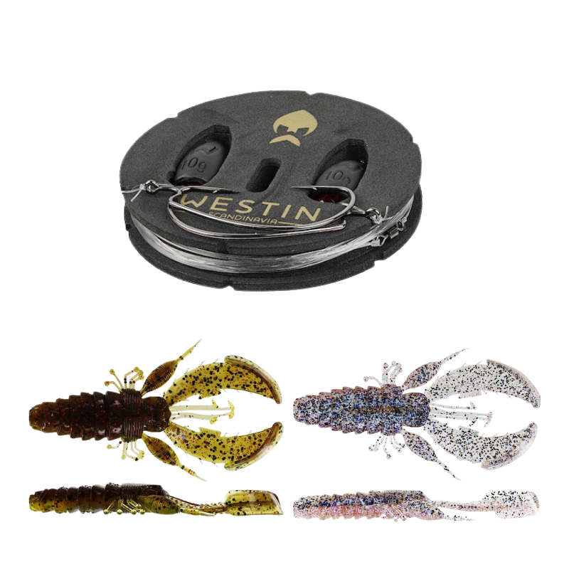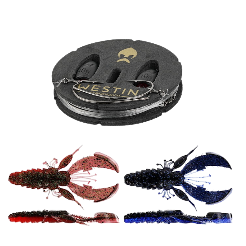En perfekt färdigknuten version av den populära Carolina-riggen. Tillverkad av våra bästsäljande sänken, krokar, tillbehör och fluorocarbon. Levereras riggad med en Westin CreCraw på en smidig och återanvändbar EVA-spole. Perfekt för alla vatten, både från båt och land.