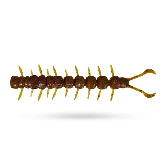 Under ytan släpper hyperrealistiska Centipede lös en frenesi av mikrorörelser från sina 20 livliga ben och skapar krypande och vibrerande rörelser som fisken helt enkelt inte kan ignorera. Den segmenterade kroppen och den attraktiva stjärten ger subtila rörelser – perfekta för att utlösa hugg från nyfikna eller försiktiga rovfiskar. Centipede creaturebait är designat för mångsidighet och har en smal profil för optimala krokningsegenskaper. Fiska betet längs botten riggad på en EWG/Offset-krok, Texas & Carolina, Swimming eller Stand-Up jigghuvud.
